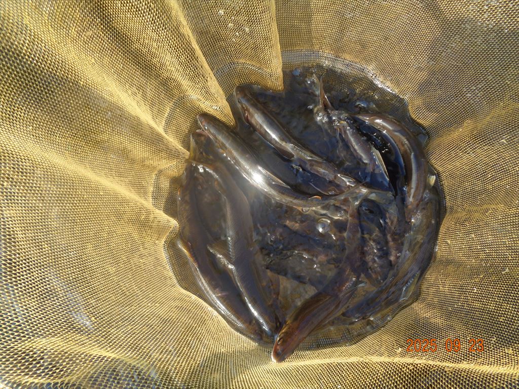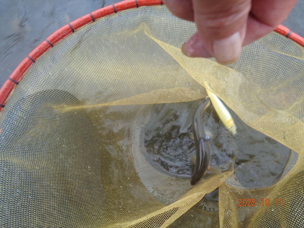 水温22℃、減水状態でした。流心狙い良型サイズでした。 |
